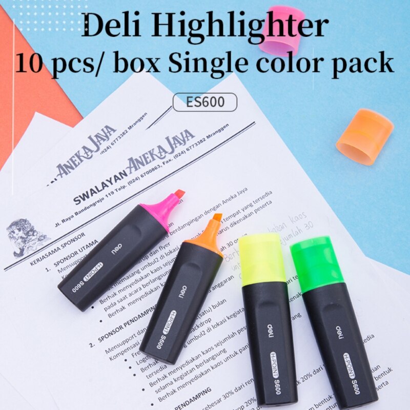 Resaltador Deli de color amarillo/verde para resaltar los textos mas interesantes ideal para el colegio, la oficina y el hogar.
