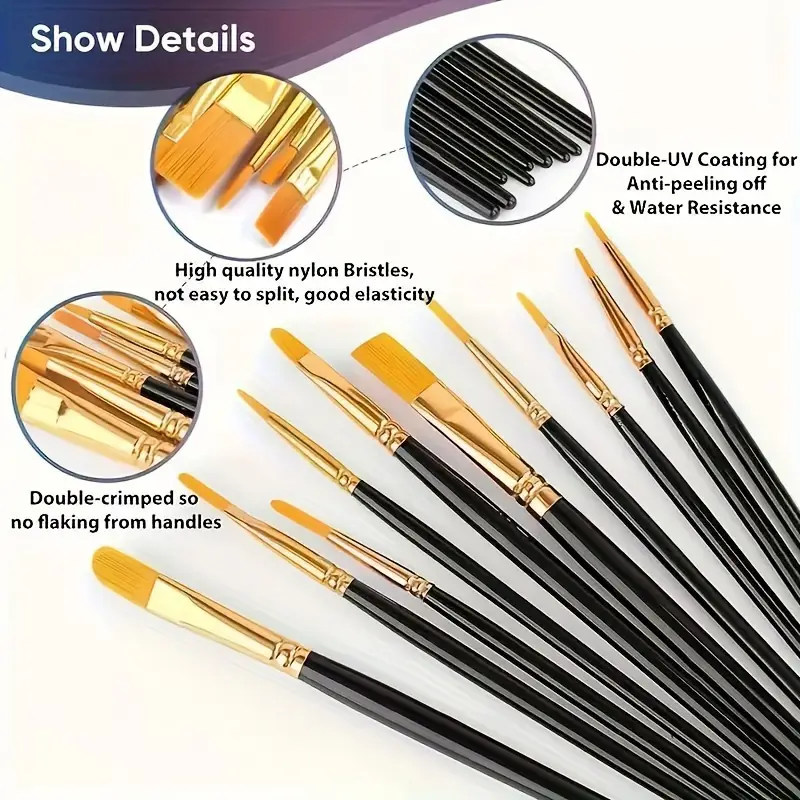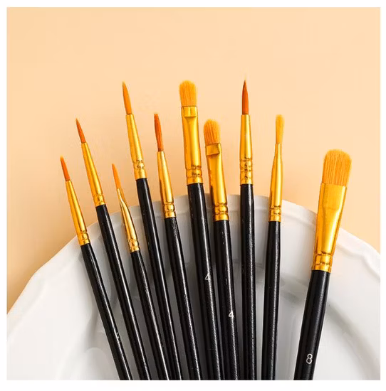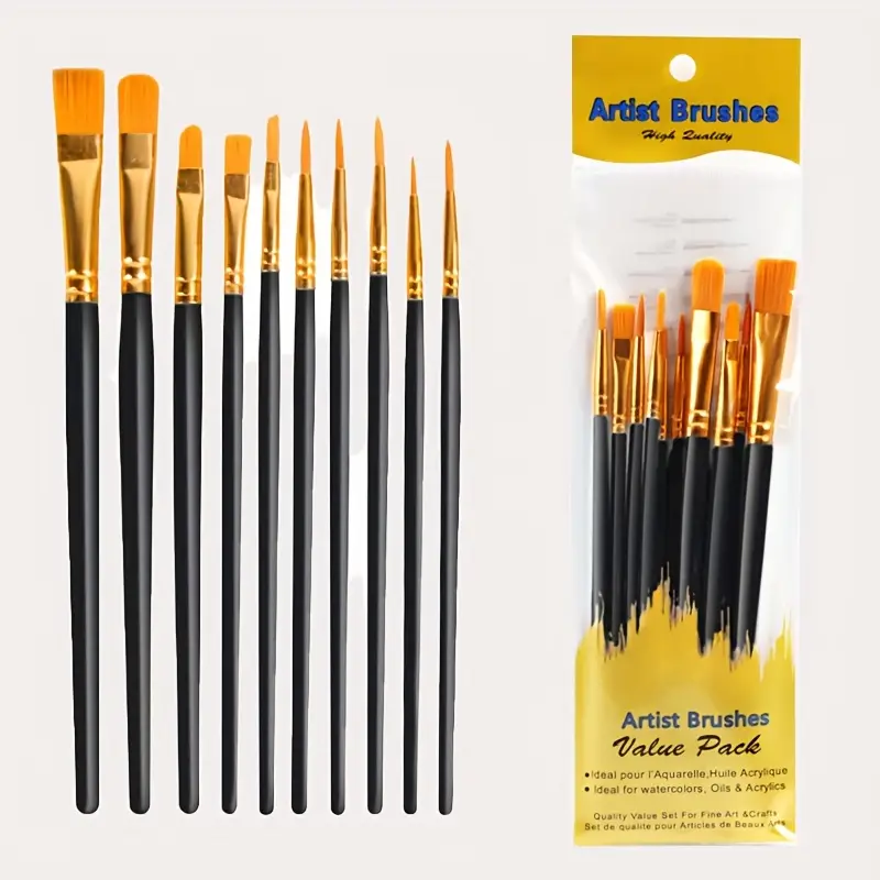 Juego de 10 pinceles de pintura, cabeza de pincel de nailon acrílico para óleo y acuarela, traje perfecto de pintura artística, el mejor regalo para entusiastas de los niños, clases de pintura, herramientas de creación de arte.