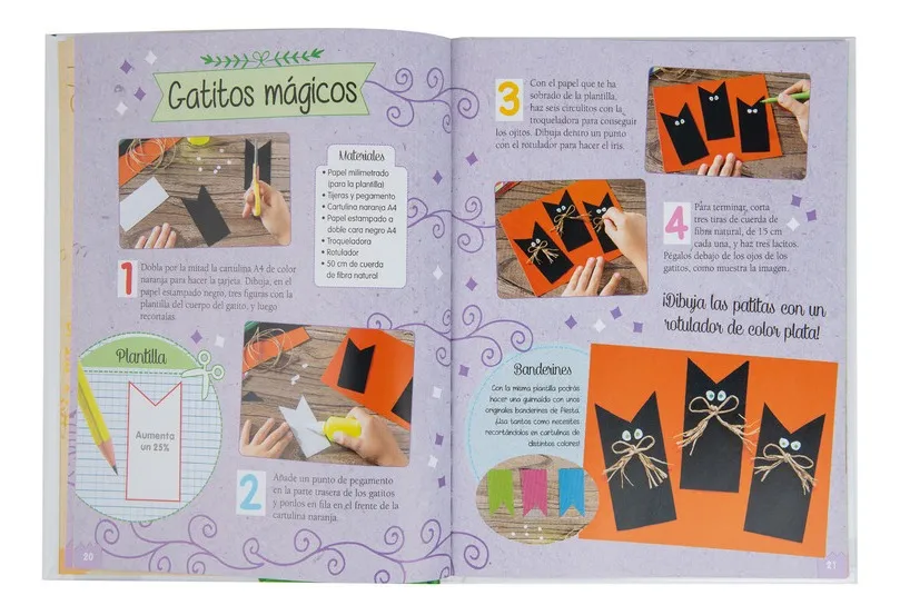 El papel, con todos sus tipos y variantes, es un material muy versátil para desarrollar sorprendentes manualidades. Te proponemos una gran variedad de proyectos explicados paso a paso: tarjetas personalizadas para fiestas, originales regalos hechos con las técnicas del origami, 3D y quilling, hasta el packaging, que te enseñará a diseñar divertidos envoltorios para tus caramelos favoritos.