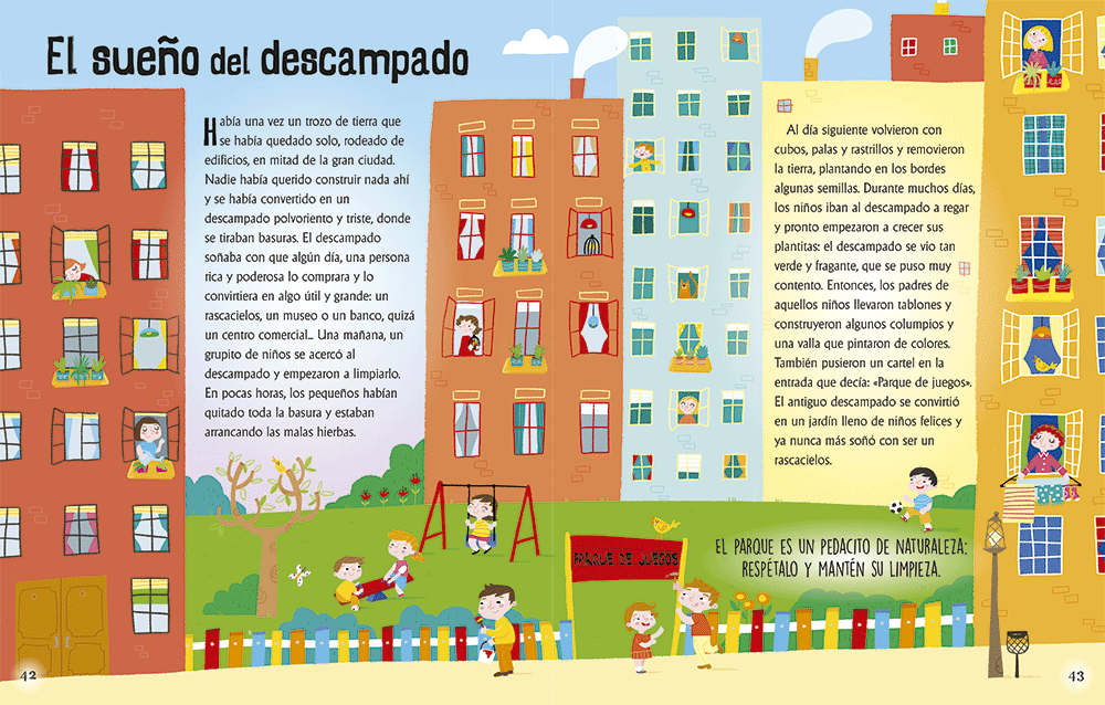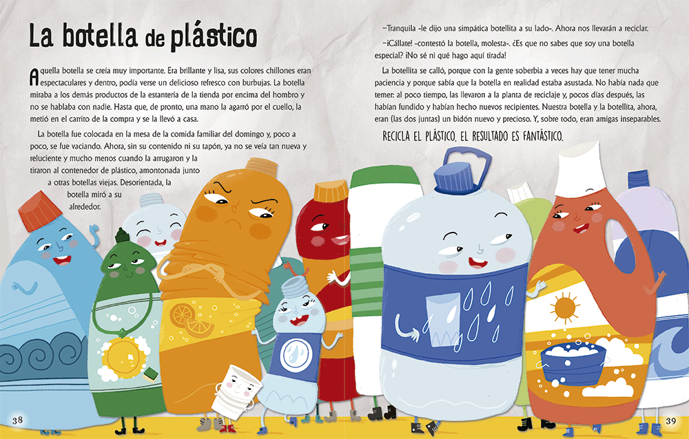 Imagínate… Enanitos que no saben muy bien qué hacer con su basura, elefantes ahorrando agua, cangrejos reciclando latas, duendecillos plantando un huerto urbano, marcianitos frioleros que contaminan su atmósfera, dragones que apagan la luz, superhéroes que limpian el bosque… ¿Te parece que son historias de un reino muy, muy lejano? ¡Pues no lo son! Como si fueras un personaje de estos cuentos, te animamos a hacer pequeños grandes gestos cada día para ahorrar energía, reciclar, contaminar menos y proteger la naturaleza.