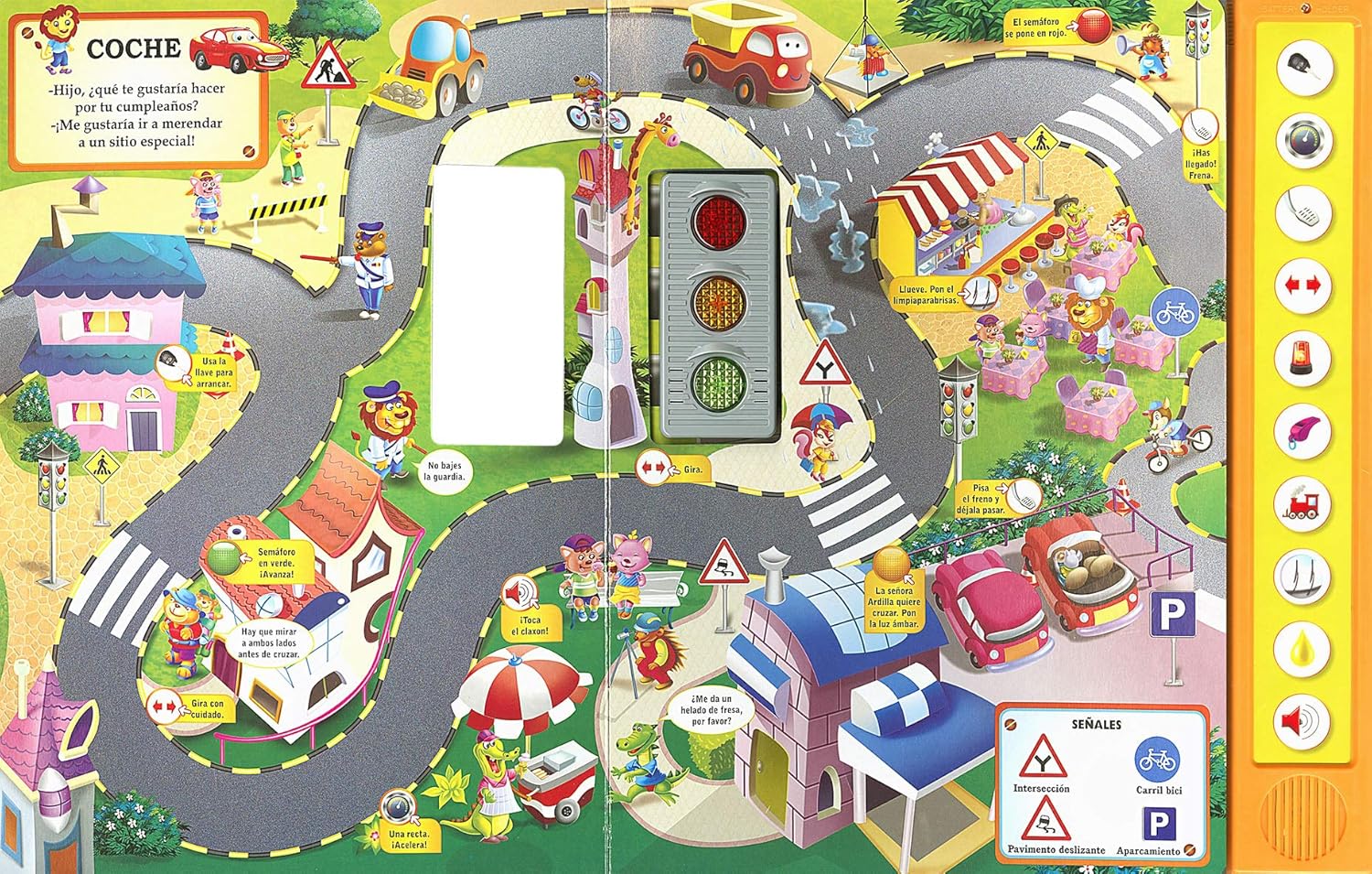 ¡Descubre las señales de tráfico llevan do 5 vehículos por la ciudad! El tráfico, los semáforos y los peatones… ¡Hay que estar muy at en to a todo! Con este libro podrás practicar y aprender a moverte por la ciudad respetando las señales de tráfico. ¡Verás qué divertido!