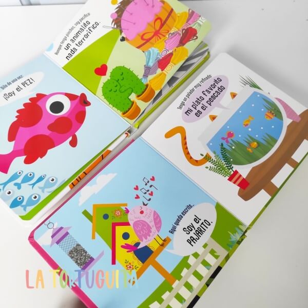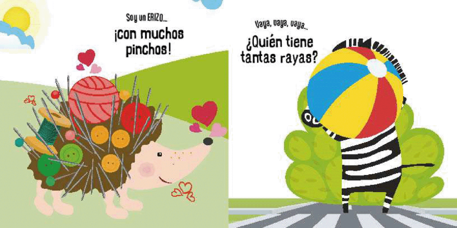 Estos libritos están llenos de sorpresas. En cada página, un animalito propone un pequeño reto: ayudándose de la rima y de los coloridos dibujos, los más peques deberán averiguar quién se esconde. Son animalitos muy conocidos, pero están todos escondidos. ¿Sábras quién es el protagonista?