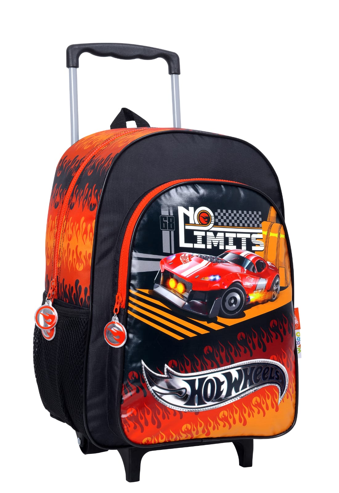 Mochila hotwheels original viene con una reparticion grande con dos cierres, 1 bolsillo frontal mediano con doble cierre, 1 portabotella elásticos con red en el lateral, 2 asas acolchonadas ajustables, 1 cartel para identificar la mochila y viene con dos ruedas y dos topes.