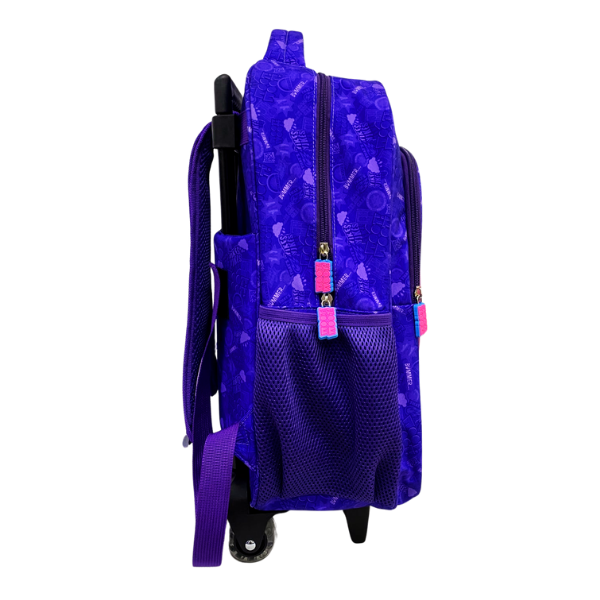 Mochila carro intesamente 2 (think positive). Viene con dos ruedas y 2 topes. Contiene una reparticion grande con dos cierres, un bolsillo frontal grande, y dos portabotellas elásticos con red en los laterales y 2 asas acolchonadas ajustables.