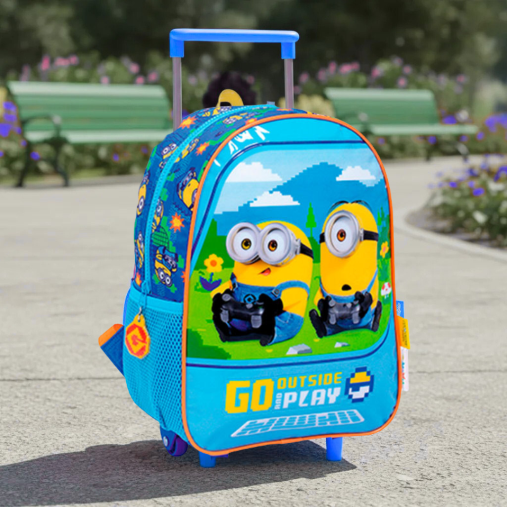 Mochila kuromi original viene con una reparticion grande con dos cierres, un bolsillo frontal grande, 1 portabotella elásticos con red en el lateral, 2 asas acolchonadas ajustables , 1 cartel para identificar la mochila y viene con 2 topes y 2 ruedas.
