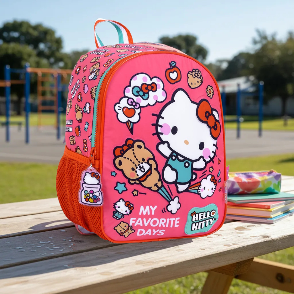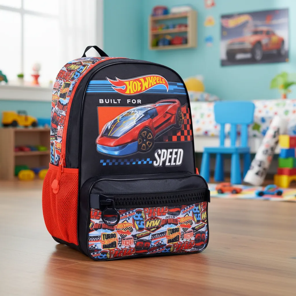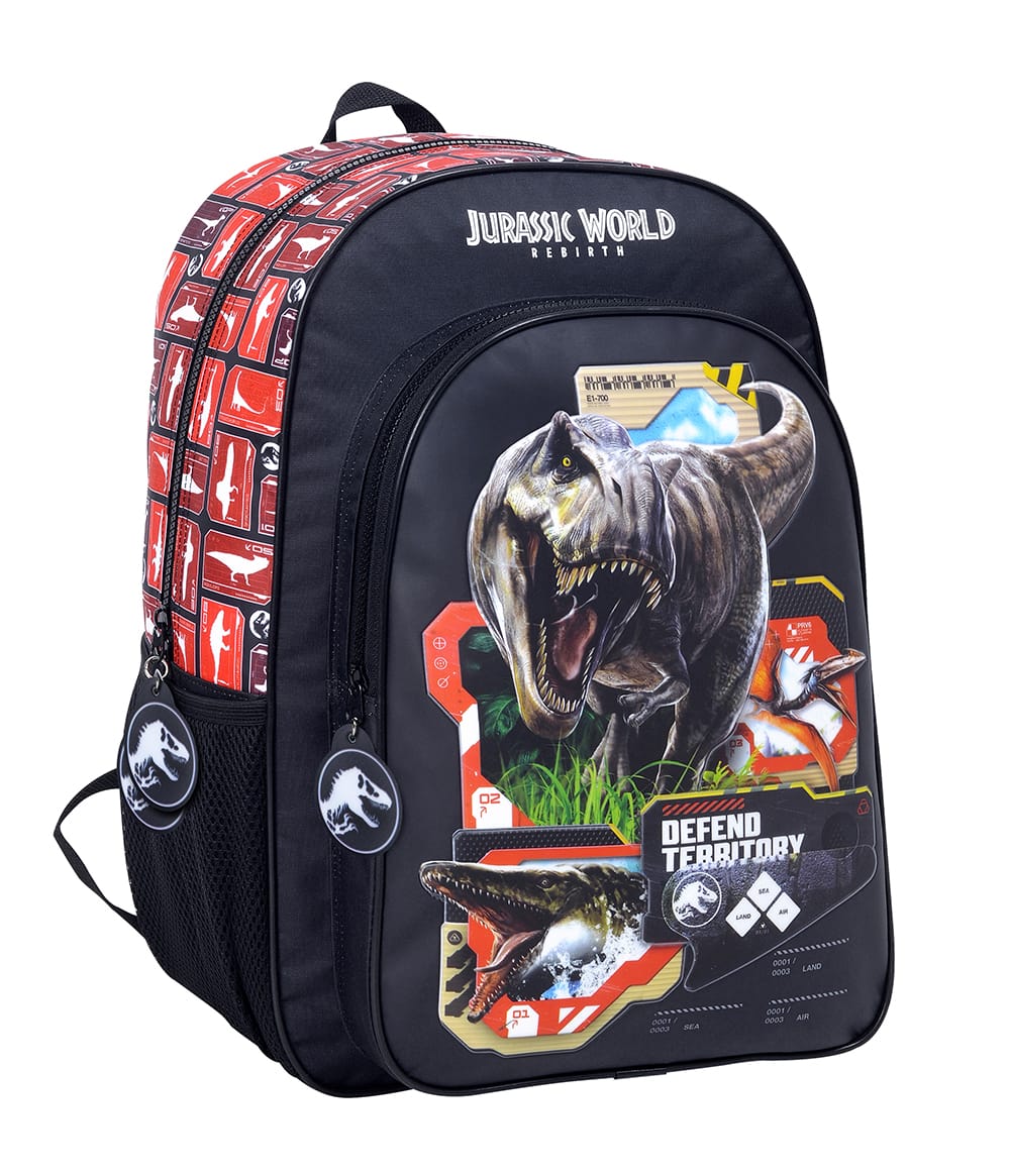 Mochila jurassic world original viene con una reparticion grande con dos cierres, un bolsillo frontal grande, 1 portabotella elásticos con red en el lateral, 2 asas acolchonadas ajustables y 1 cartel para identificar la mochila.