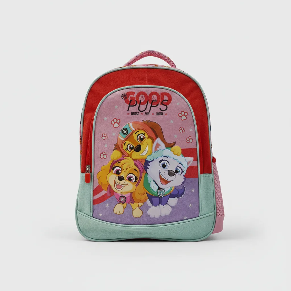Mochila paw patrol original viene con una repartición grande acolchonada con dos cierres, un bolsillo frontal grande, 1 portabotella elásticos con red en el lateral y 2 asas acolchonadas ajustables.