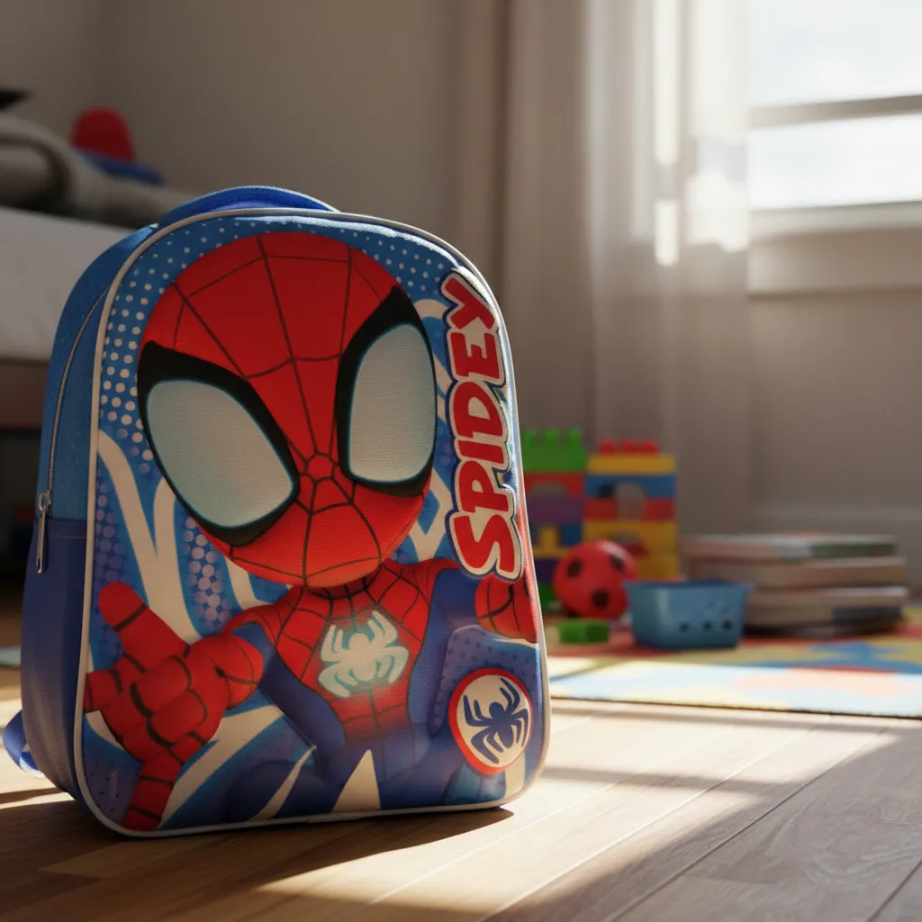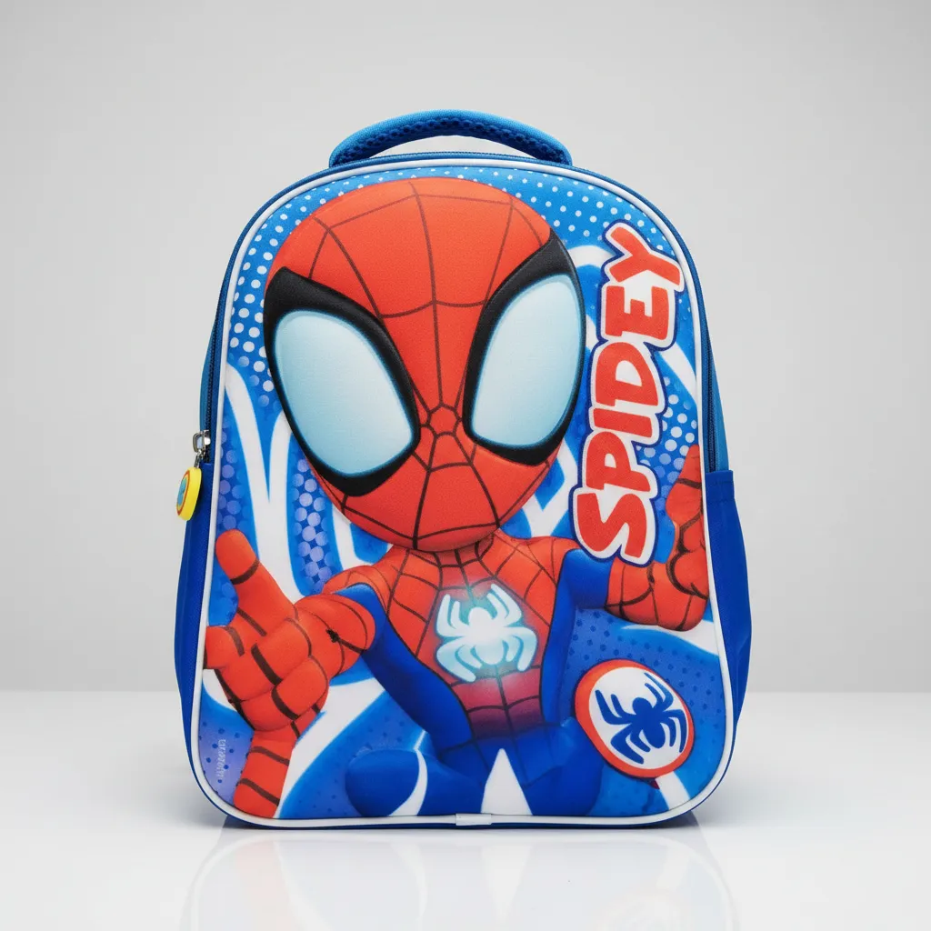 Mochila spidey en 3d original con una repartición unica con 1 cierre y 2 asas ajustables acolchonadas
