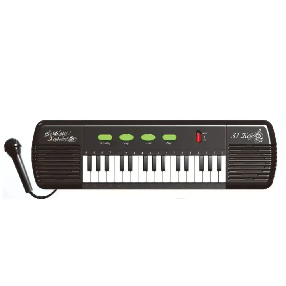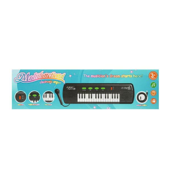 Divertido órgano musical con varias funciones. Contiene 31 teclas, 18 piezas musicales, graba y reproduce, además viene con cable usb y micrófono. Ideal para aquellos pequeños que se inician en la música.