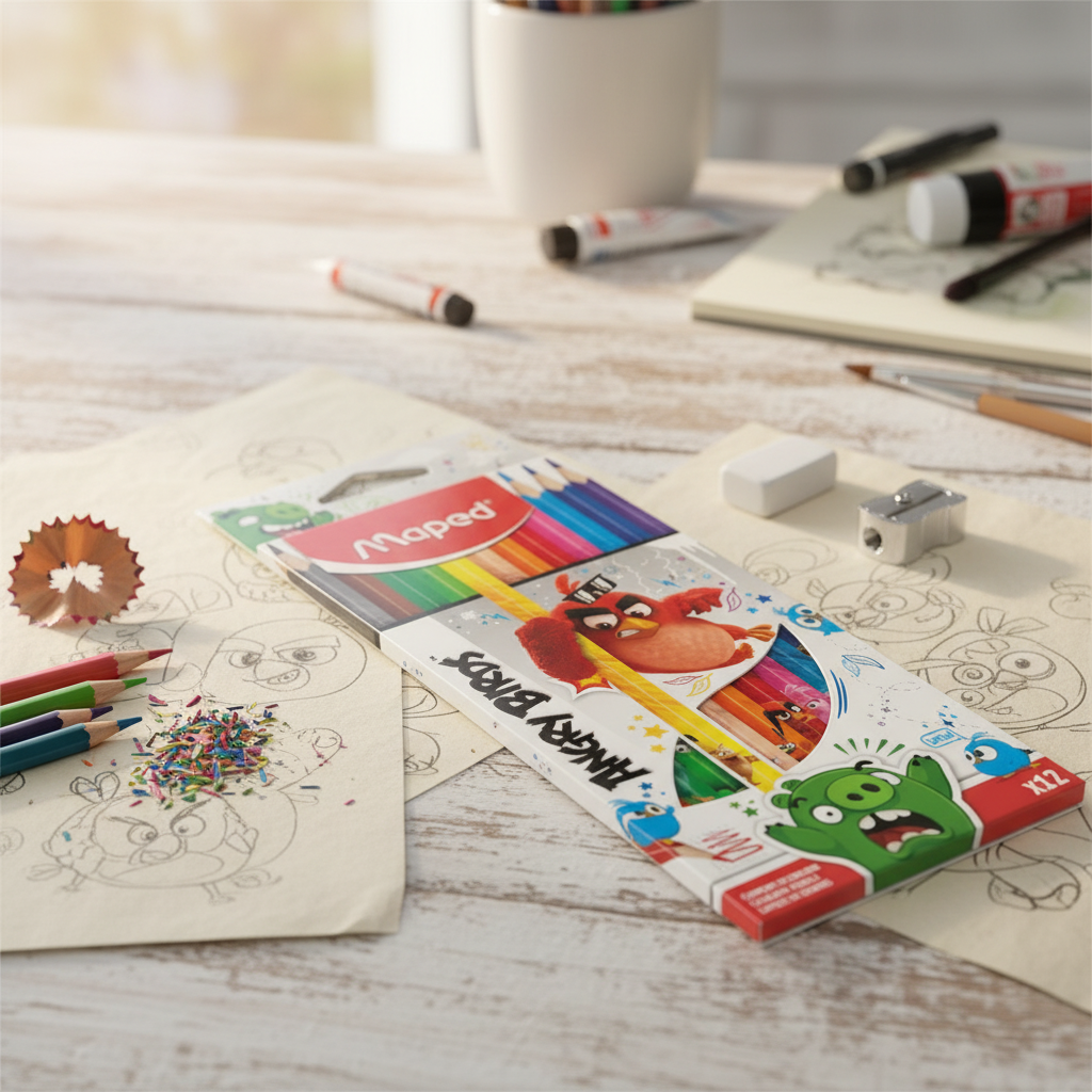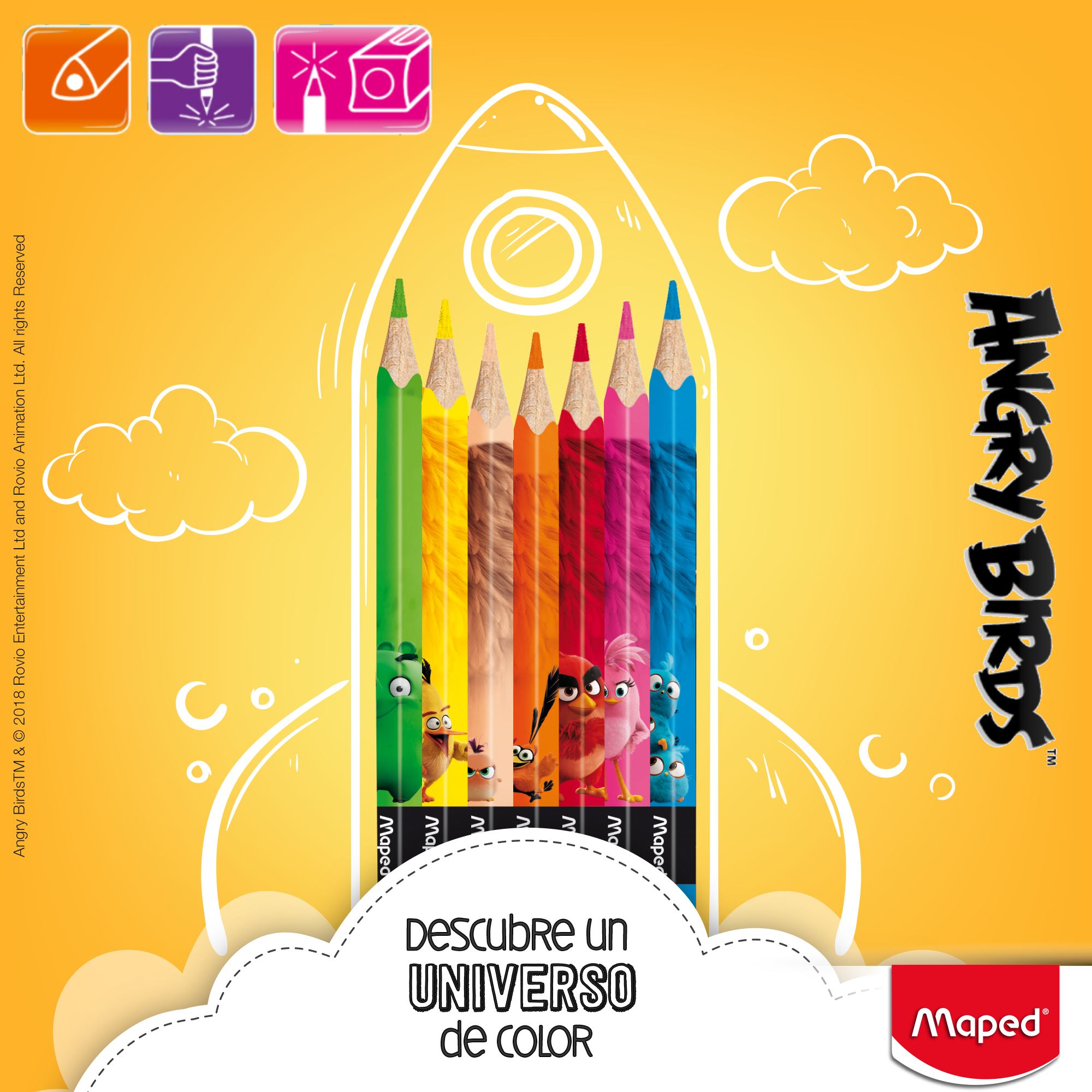 Ideales lápices triángulares de colores maped, con un diseño unico de angry birds x12 piezas.