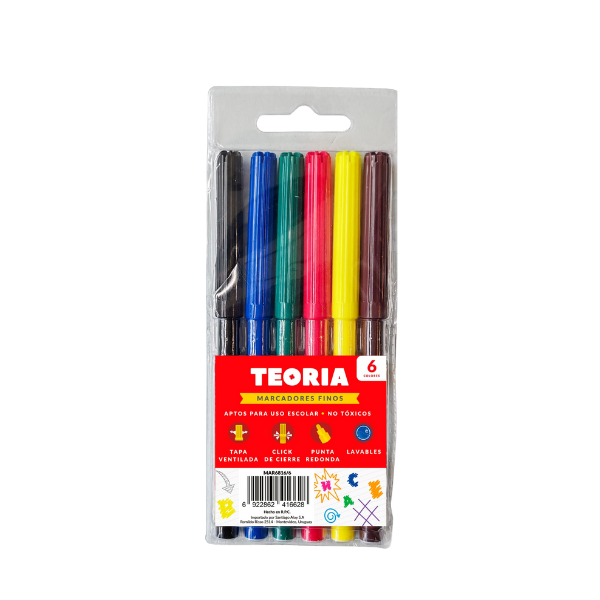 Marcadores teoria+ finos de colores x6