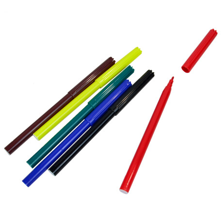 Marcadores de fibra finos de punta redonda. Tapa ventilada con click de cierre que alarga la vida del marcador, evitando que se seque. Tinta lavable.