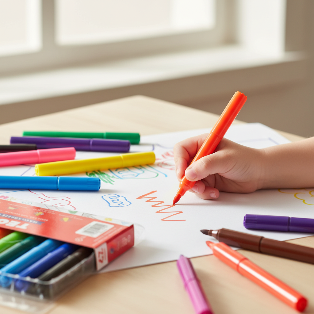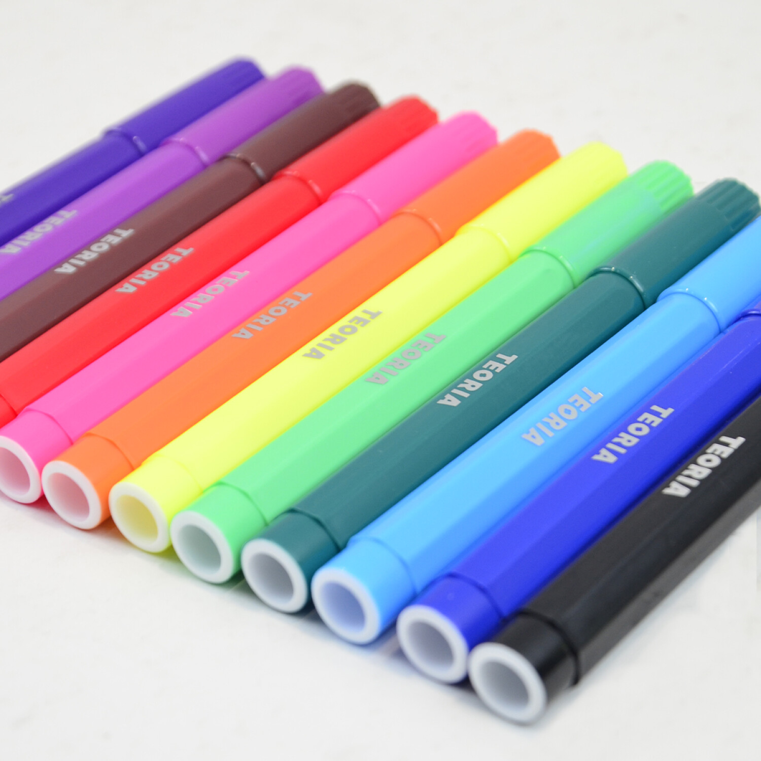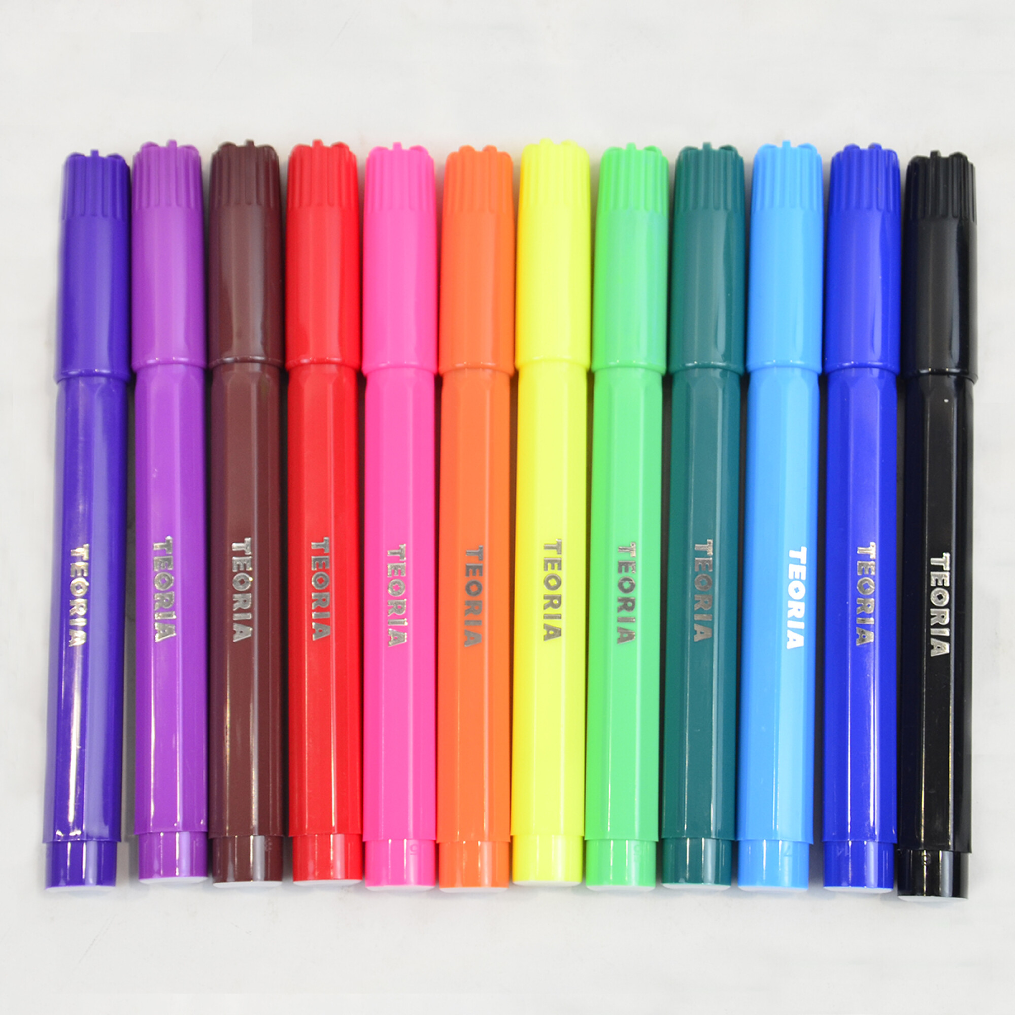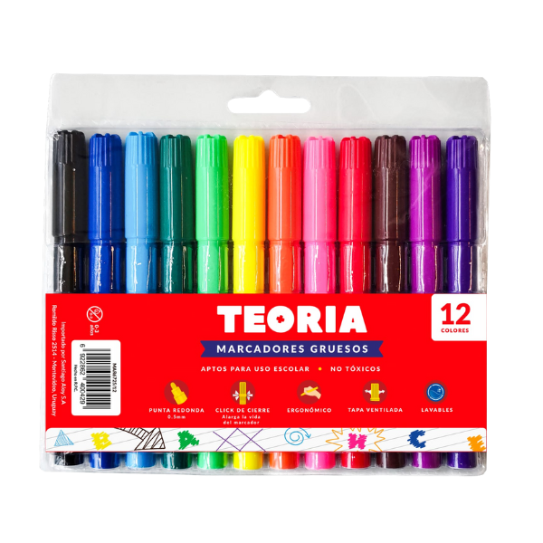 Marcadores de fibra gruesos de punta redonda y cuerpo ergonómico. Tapa ventilada con click de cierre que alarga la vida del marcador, evitando que se seque. Tinta lavable.