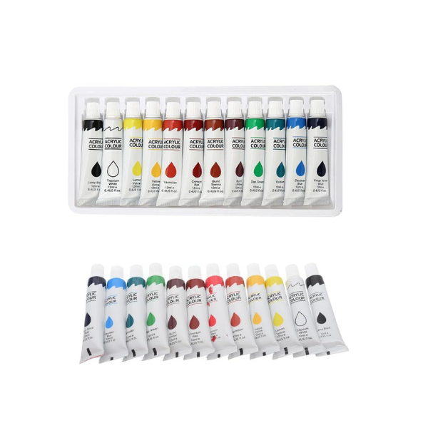 - Contiene: 12 pinturas acrílicas de 12ml c/u